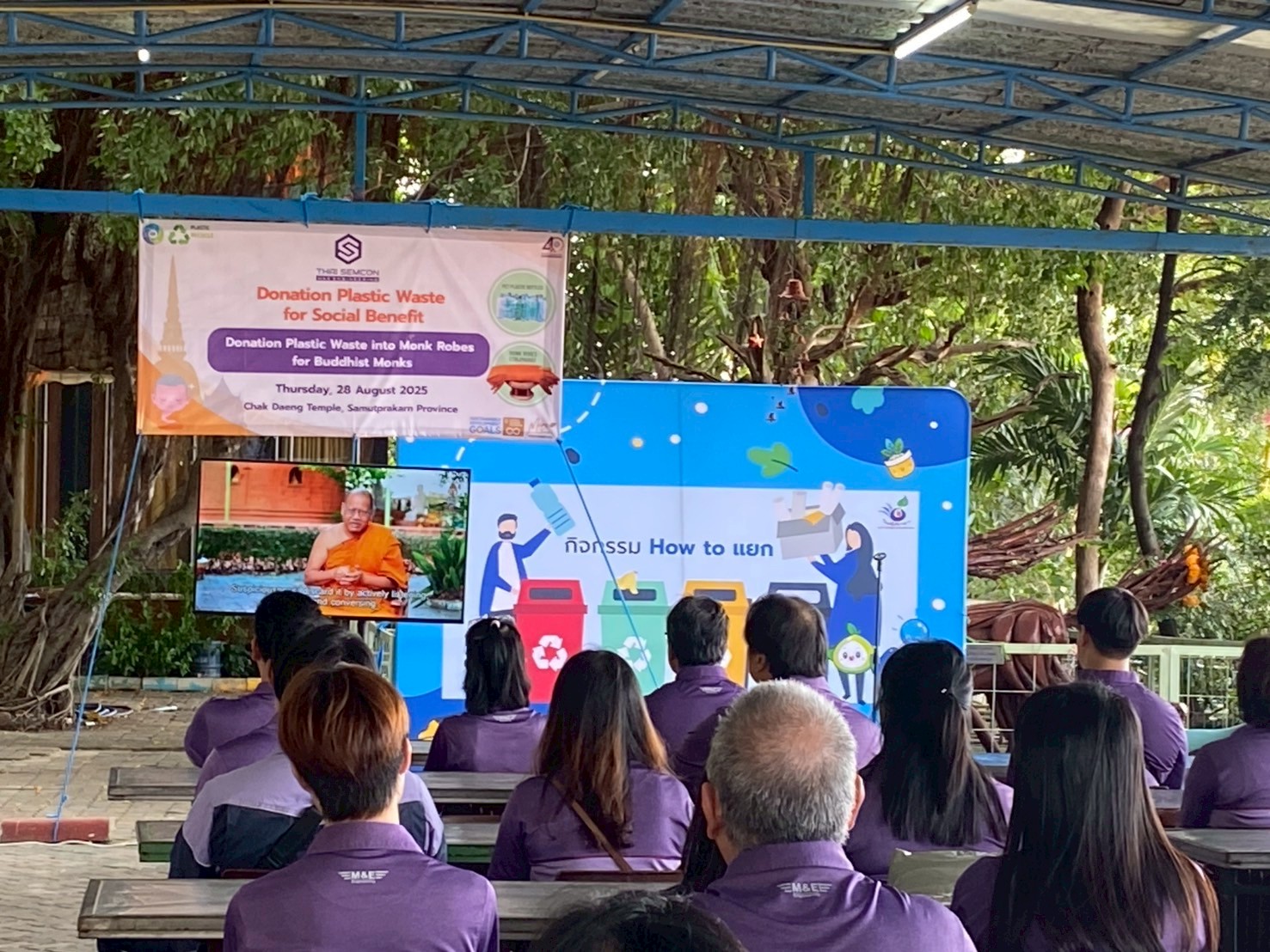 เมื่อวันที่ 28 สิงหาคม 2568 บริษัท ไทยเซ็มคอน จำกัด ได้จัดกิจกรรม CSR รับผิดชอบสังคมในโครงการ “Donation Plastic Waste for Social Benefit” เพื่อนำขยะพลาสติกไปแปรรูปเป็นผ้าไตรจีวรถวายแด่พระสงฆ์ ณ วัดจากแดง จังหวัดสมุทรปราการ