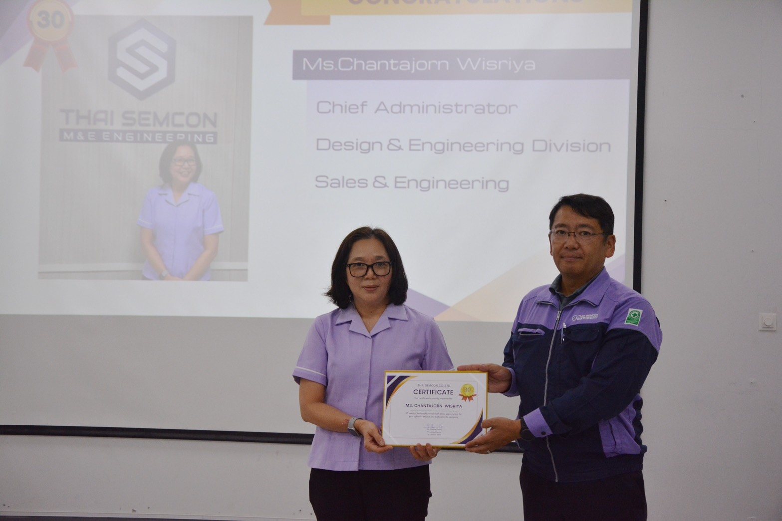 บริษัท ไทยเซ็มคอน จำกัด ได้จัดพิธีมอบรางวัล Long Service Award Ceremony ประจำปี 2025 ขึ้นเมื่อวันที่ 14 ตุลาคม 2568 ณ ศูนย์ฝึกอบรม Technical Center จังหวัดชลบุรี ในปีนี้ บริษัทฯ ได้มอบรางวัลให้กับพนักงานรวมทั้งสิ้น 26 ท่าน ที่ร่วมทำงานกับทางเรามาเป็นระยะเวลานาน ตั้งแต่ อายุงาน 10 ปี, 20 ปี, 25 ปี และ 30 ปี เพื่อเป็นการยกย่องและแสดงความขอบคุณอย่างสูงสุดแก่พนักงานผู้ทุ่มเทแรงกายและแรงใจในการปฏิบัติงานร่วมกับบริษัทฯ มาอย่างยาวนาน ตอกย้ำถึงความเชื่อมั่นของบริษัทฯ ที่มีต่อบุคลากรทุกท่าน และเป็นการเสริมสร้างขวัญและกำลังใจให้แก่พนักงานทุกคนในองค์กร