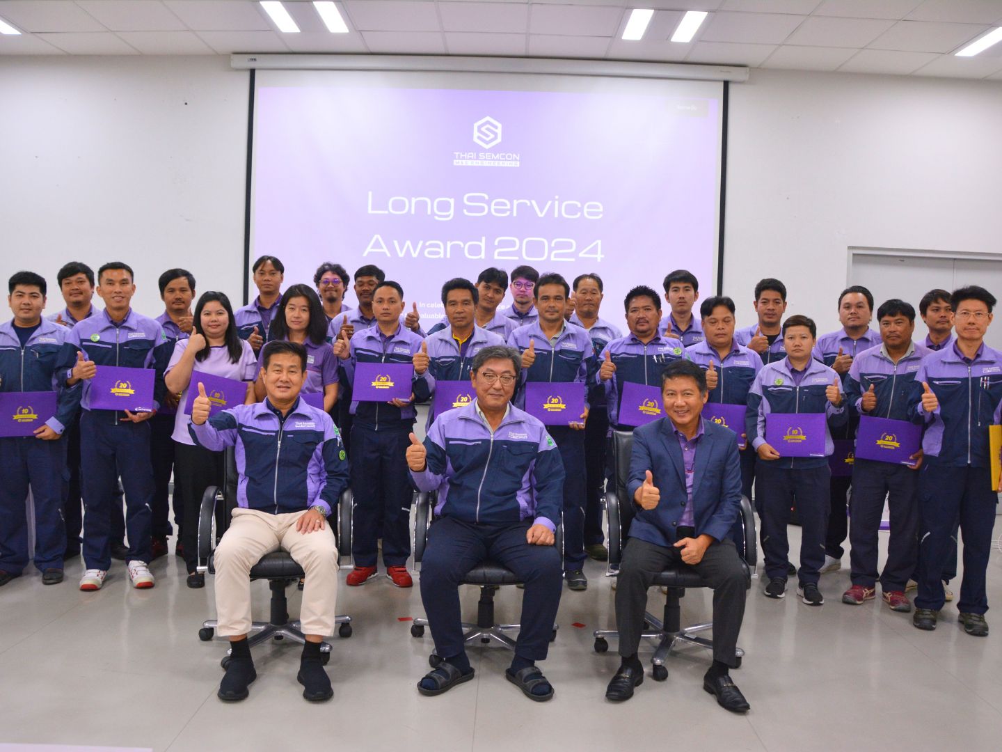 วันที่ 11 ตุลาคม 2567 ได้มีการจัดกิจกรรมมอบเกียรติบัตรให้แก่พนักงานที่ทำงานกับบริษัทไทยเซ็มคอน มาเป็นระยะเวลายาวนาน ตั้งแต่ 10,20,25 และ 30 ปี เพื่อเป็นการขอบคุณแก่พนักงาน ที่ตั้งใจทำงานให้กับบริษัทตลอดระยะเวลาที่ผ่านมา